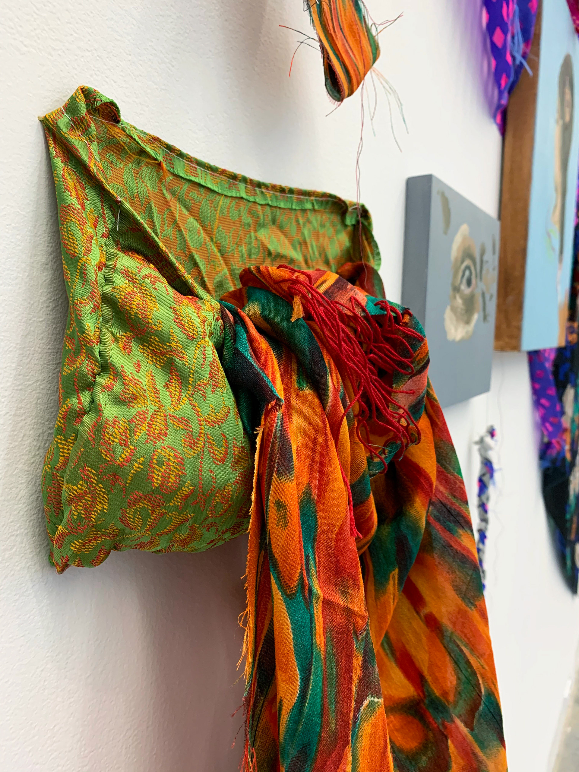 Kajill is an interdisciplinary artist born and raised in Mohkínstsis, Treaty 7 territory, or what we know to be Calgary, Alberta. Currently, her work explores the intersections of personhood, the Racial Imaginary, and familial narrative and histories as a first-generation Punjabi Sikh woman, born and raised in Canada. Kajill’s artistic journey has never been confined to the use of one medium. As an artist who is vested in the exploration of how different mediums can inform our art practices, she deeply believes in the potential of being an interdisciplinary artist. Her passion for art making started with drawing and then transformed into painting. Upon embarking on more art-research centered goals, she gravitated towards installation and now textile art. In the present moment of her art practice, it is through navigating what she has termed an ‘archive of scrap fabrics’ that she attempts to find ways to thread together stories and memories of the past with the possibilities of where radical imagination can take us in the future.